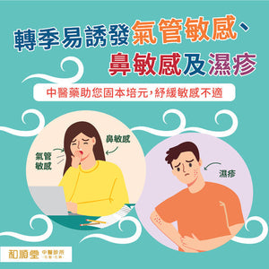 最近天氣轉涼,日夜溫差較大,容易着涼感冒,最近因感冒求診的個案增多,也有不少人因轉季誘發鼻敏感、氣管敏感及濕疹,出現咳嗽、流鼻水、皮膚痕癢等問題而求診。