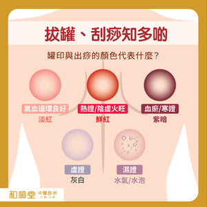 Q:經常聽到同事說定期去找中醫做刮痧和拔罐,可以祛水腫消除疲勞兼提升免疫力,但看到她刮痧後全身留下紅痕,而拔罐後又在背部留下一個個圓型紅印,一個星期才散去。到底是甚麼一回事?