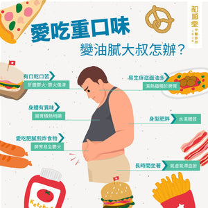 Q:我今年45歲,是職業司機,身體粗壯,平日特別愛吃甘口肥膩煎炸食物,身型略為肥胖。近年經常生痱滋,面油也特別多,身體還容易出現異味,而且較易感到口乾口苦。到底我這樣的狀況,是否反映身體有問題?中醫可有甚麼建議給我,讓我改善身體狀況?