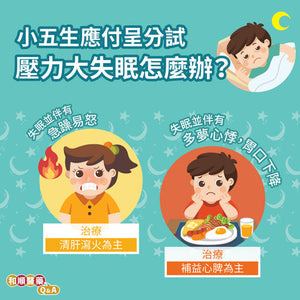 Q:女兒剛升讀小五,為了應付呈分試,暑假期間學校已安排補習,而開學後又安排了不少課後補習。女兒本身十分緊張學業,放學回家沖涼後便立即做功課及做練習,我希望她有足夠睡眠,晚上9時半便要她上床睡覺,但她常常失眠,即使當天已很疲倦也睡不著,有時在床上輾轉反側1個小時才入睡 ,但睡著後又經常發開口夢...