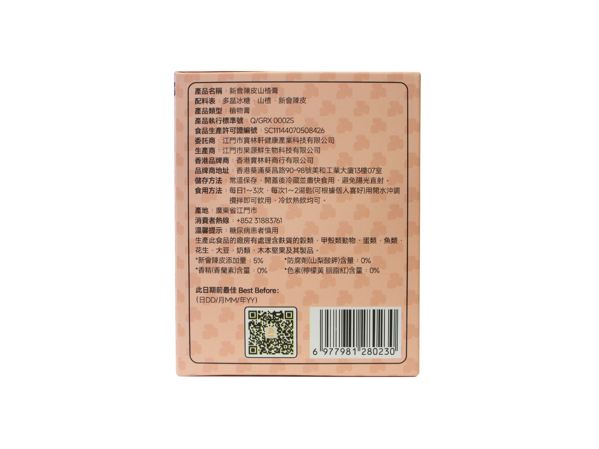 成分:多晶冰糖、山楂、新會陳皮
