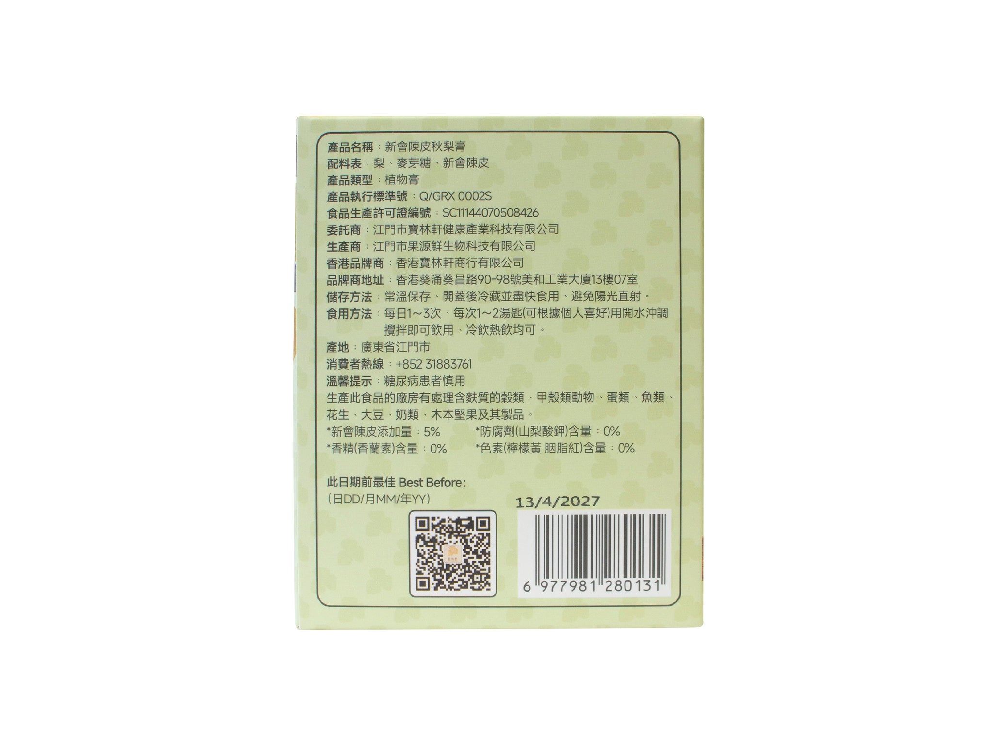 成分:梨、麥芽糖、新會陳皮
